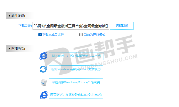 - 支持激活win系统的同时,支持激活office系统