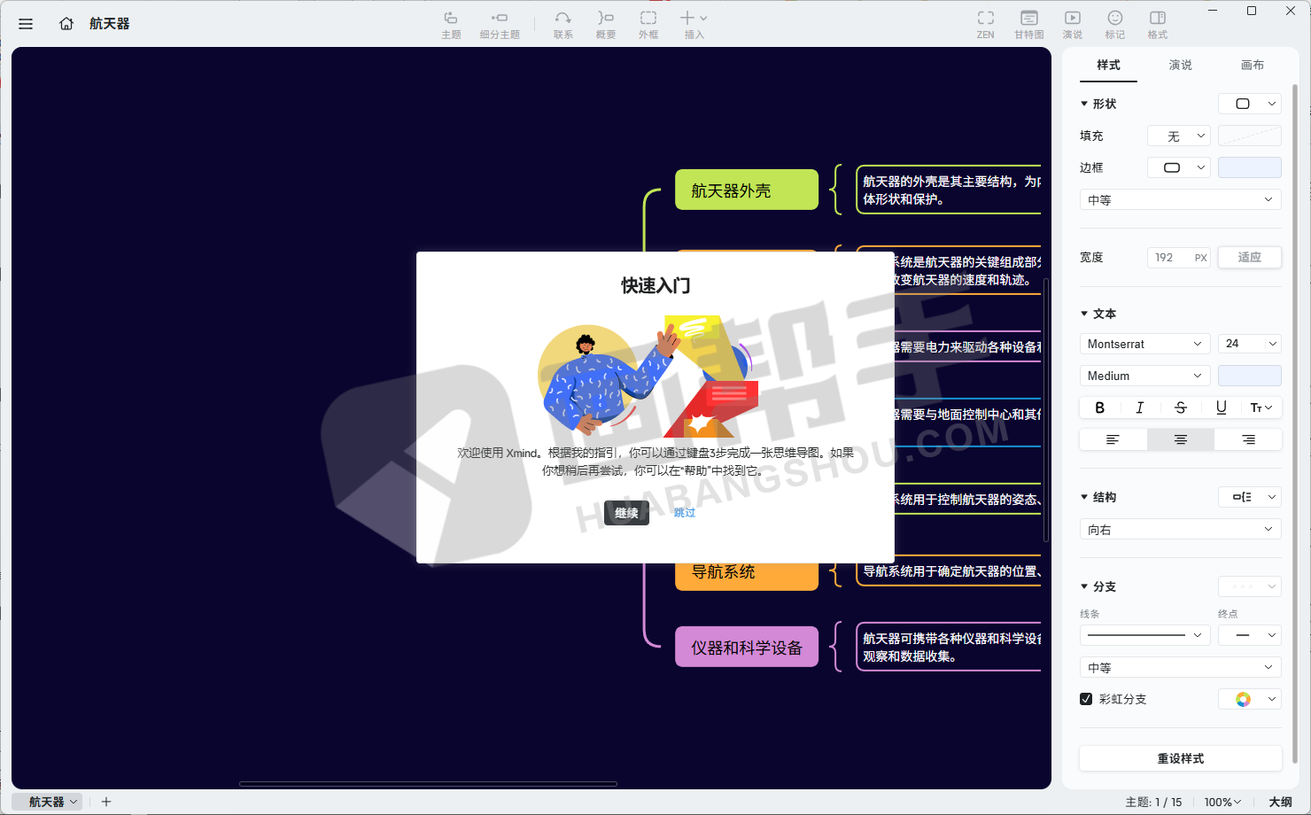 3. 分支和主题:XMind 支持分支和主题,用户可以自定义主题并创建新分支,以便更好地组织思路和内容。
