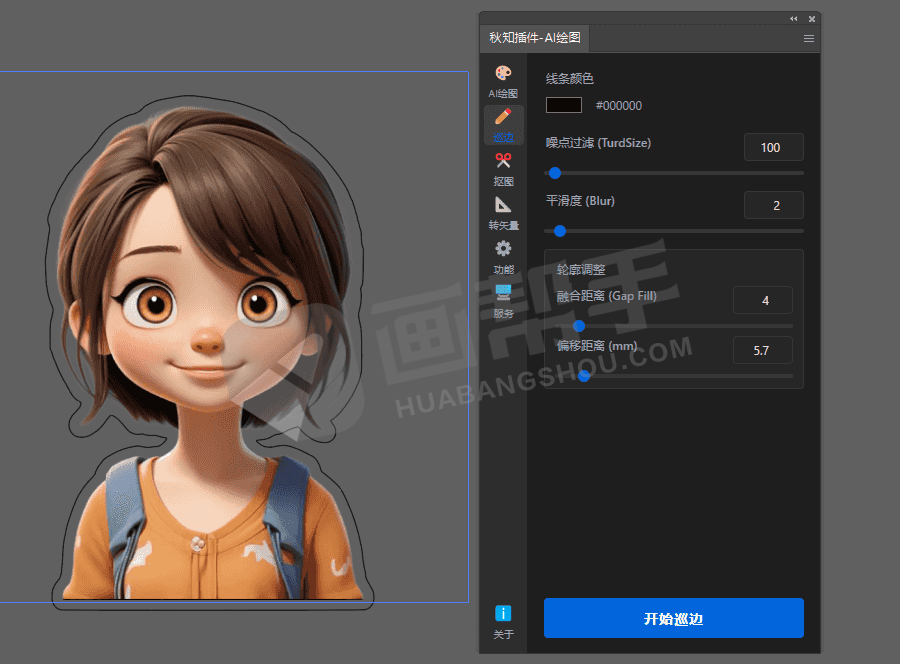 - 自动识别手绘稿、扫描图、Logo 的边缘轮廓