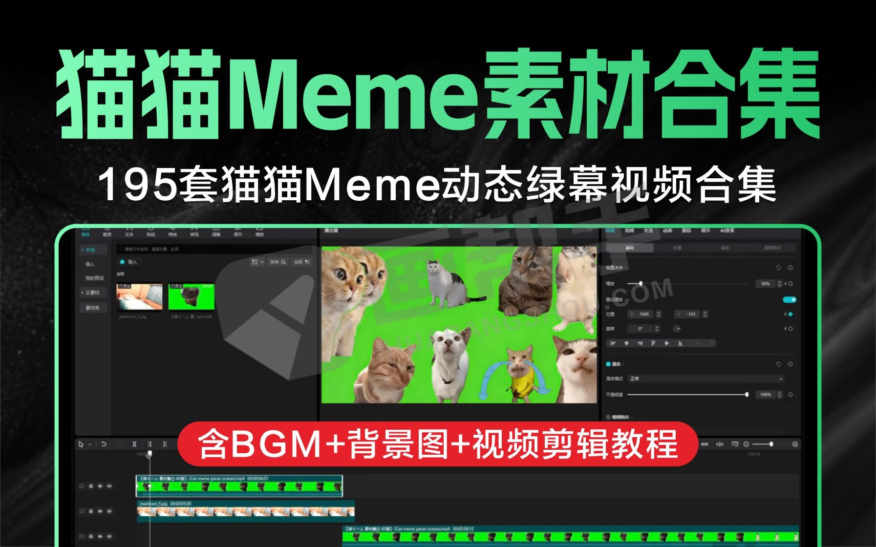 这套 195套猫猫Meme动态绿幕视频合集,正是当下 B站、抖音、小红书 等平台热门UP主的秘密武器!所有素材均为高清绿幕拍摄,支持一键抠像,轻松融入你的原创视频,瞬间提升趣味性与互动感。