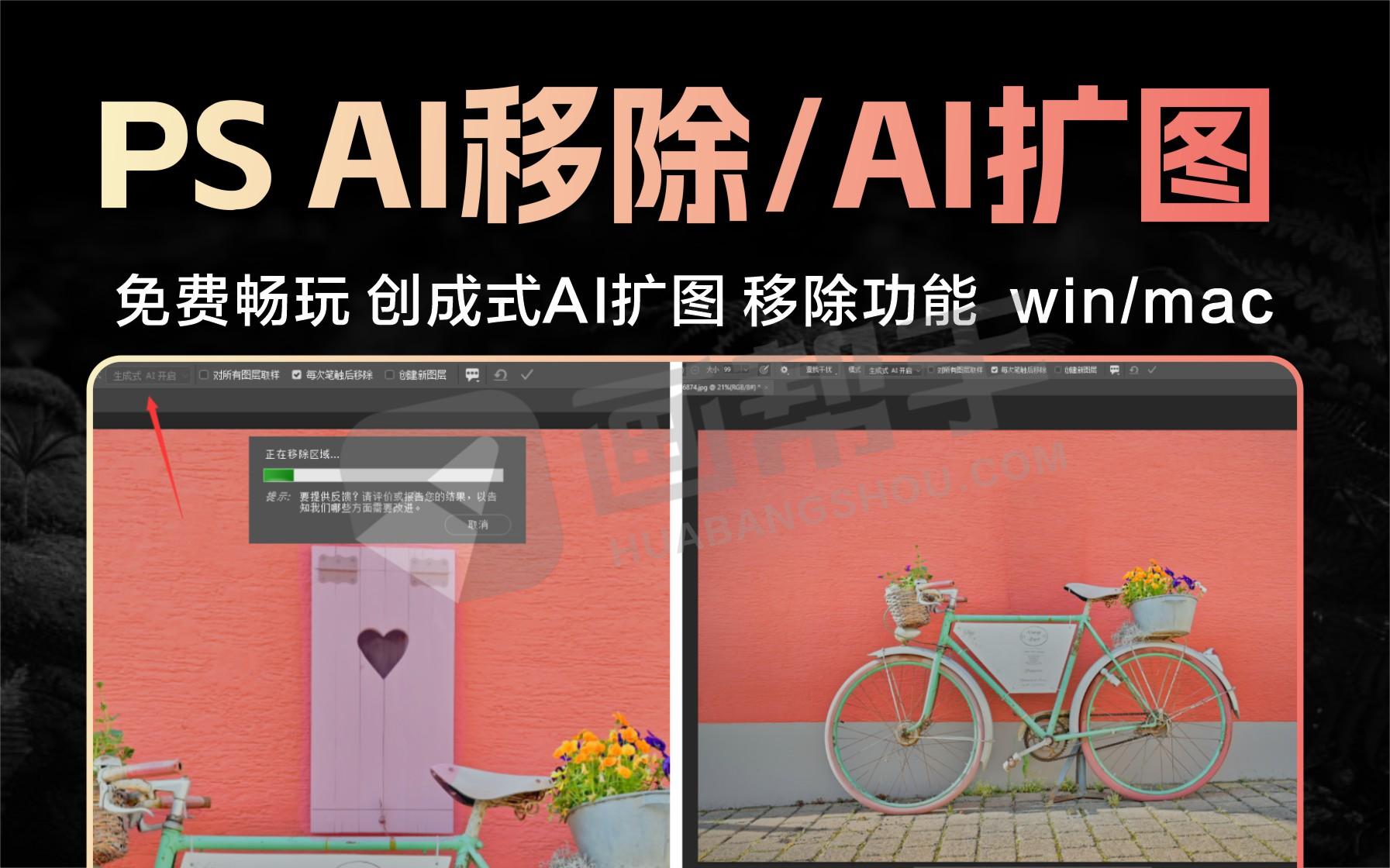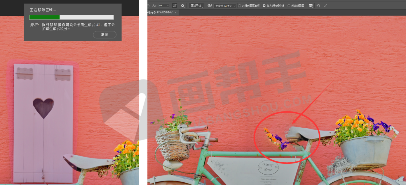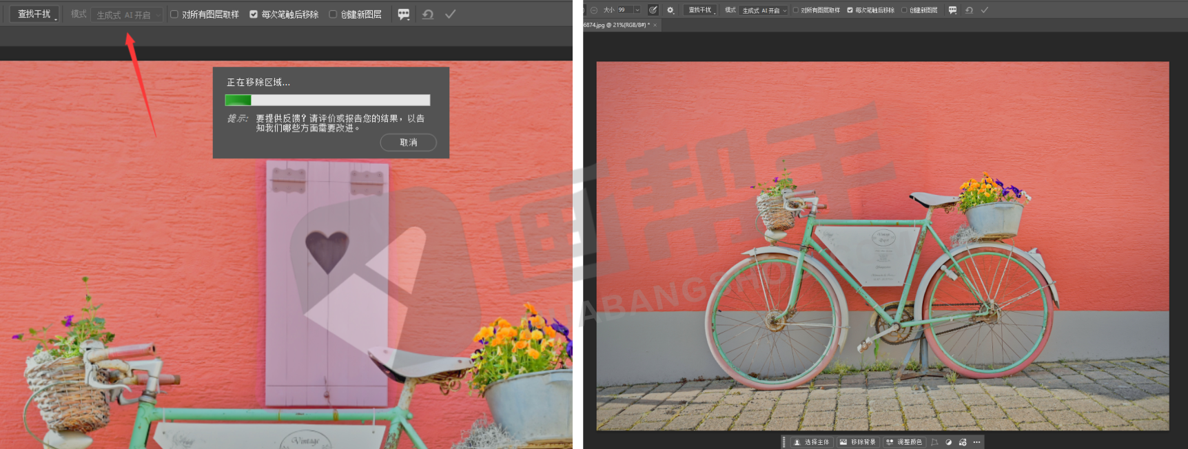 启动AI生成移除的效果: