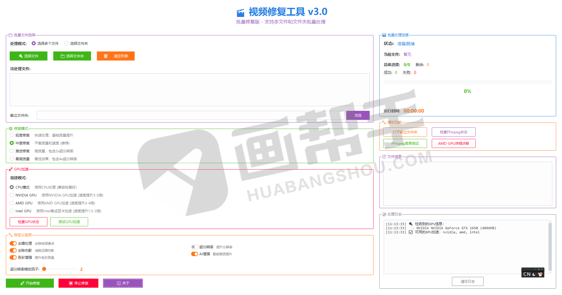 一款专为提升老旧、低清、模糊或受损视频质量而设计的专业工具。与普通单文件处理软件不同,v3.0 批量版特别强化了批量处理能力,支持一键导入多个视频文件,自动应用修复算法,显著提升工作效率,是视频工作室、档案修复机构、内容创作者和视频爱好者的理想选择。